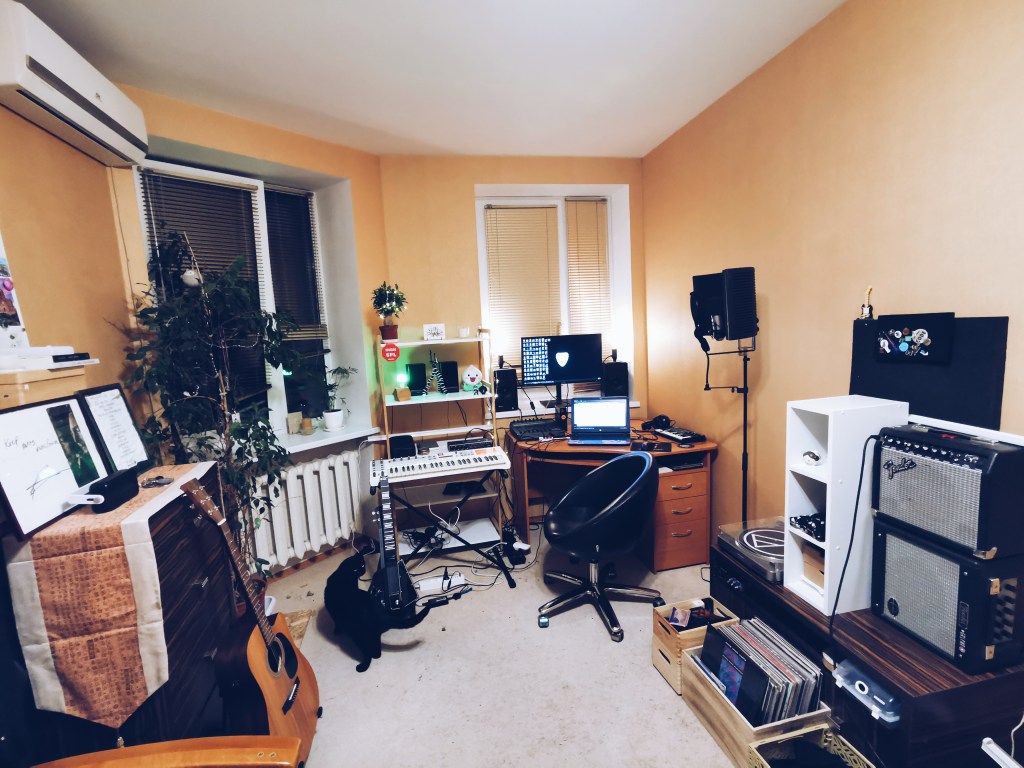Create a dedicated workspace. Even though I detest desktop computers, my laptop setup is pretty stable, desktop-like, with many extensions (large video monitor, external audio interface, audio monitors, external HDDs for additional storage and backups, and several MIDI gadgets for music production and sound design, etc.).